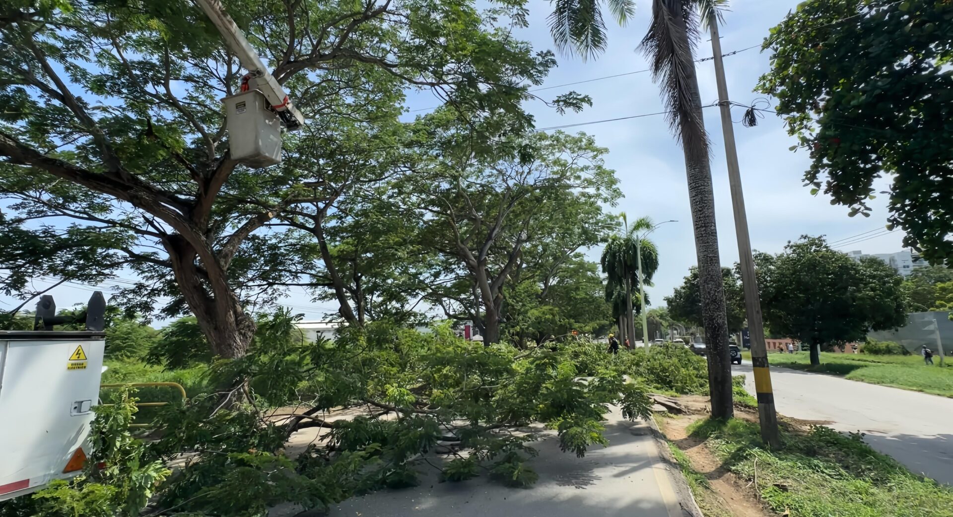 Durante la jornada de este domingo, se intervinieron cuatro árboles que presentaban un alto riesgo por el desprendimiento de ramas sobre la vía entre la glorieta de Mocarí y el centro comercial Buenavista, una de las zonas de mayor flujo vehicular en la ciudad.
