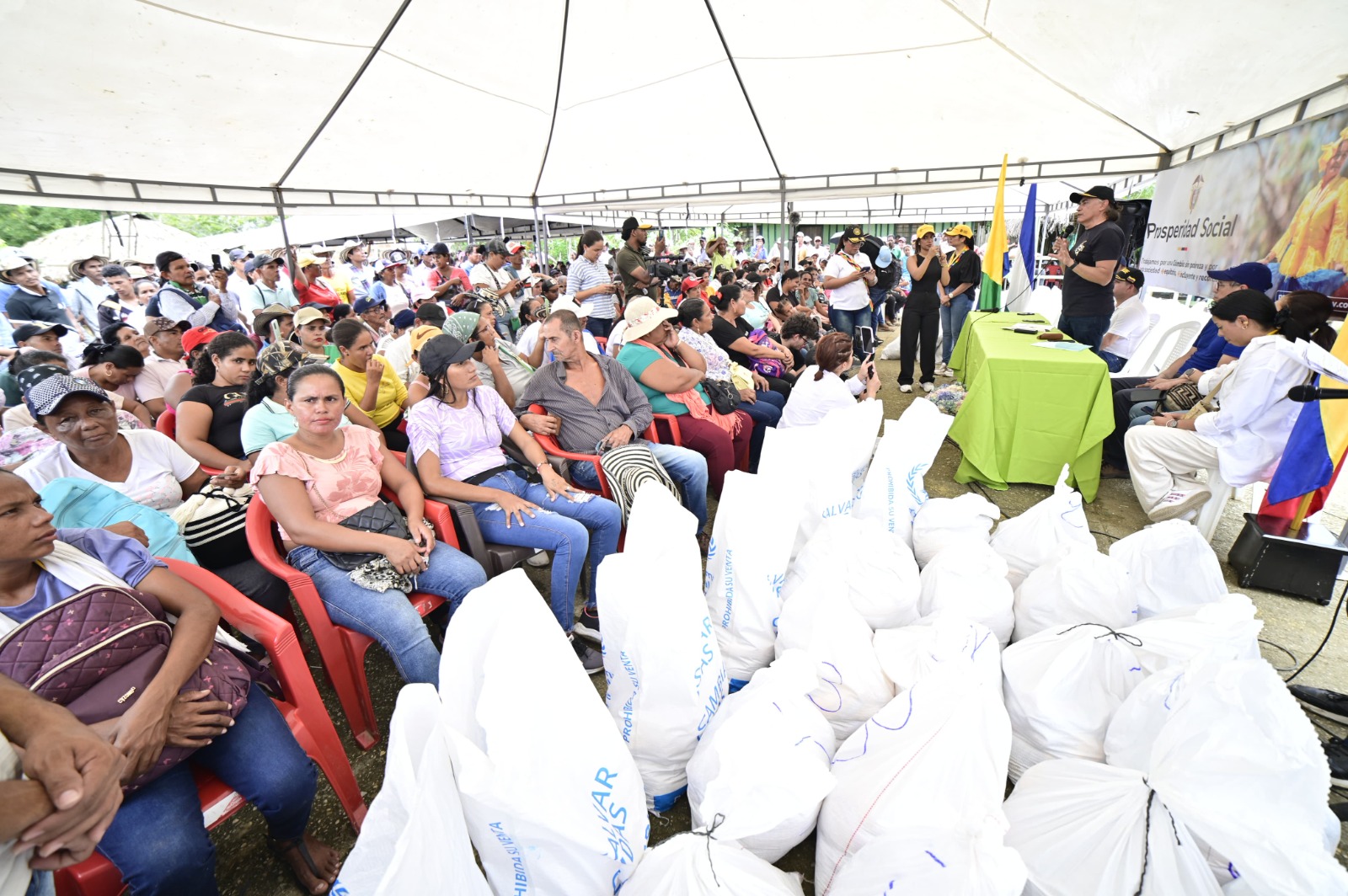 Frente al grave estado de vulnerabilidad en que se encuentra la población, que ha perdido completamente sus medios de vida, Prosperidad Social y el Programa Mundial de Alimentos (PMA) acordaron unir esfuerzos para realizar durante tres meses entregas de alimentos, que inicialmente están dirigidas a habitantes del municipio de Ayapel. Allí se inició hoy la distribución de cerca de 47 toneladas de alimentos (arroz, harina de maíz, pasta, aceite vegetal, atún, frijol, lenteja) que, según lo estimado, ayudarán a aliviar la situación de unas 6.000 personas ubicadas en 36 veredas de ese territorio.